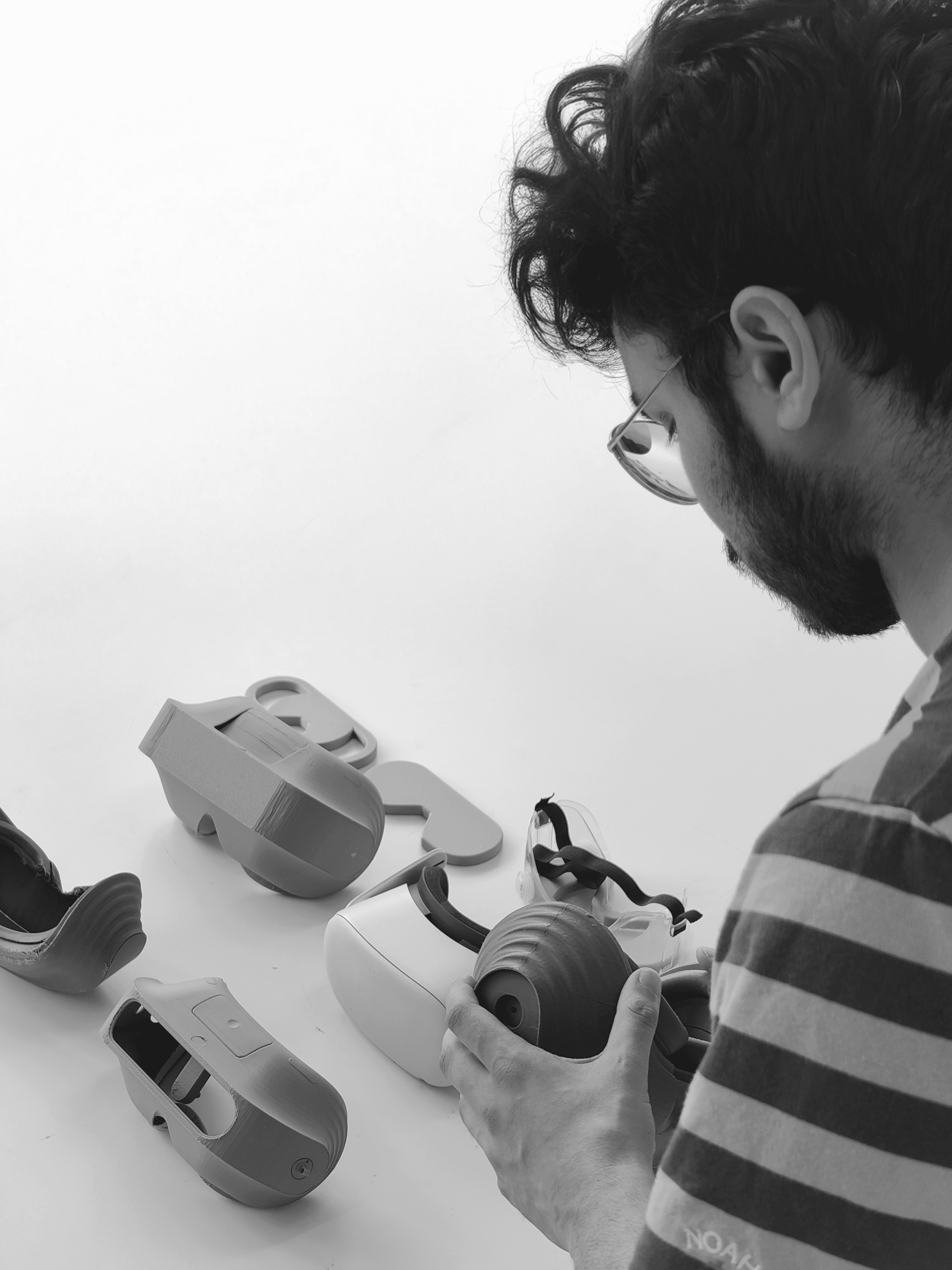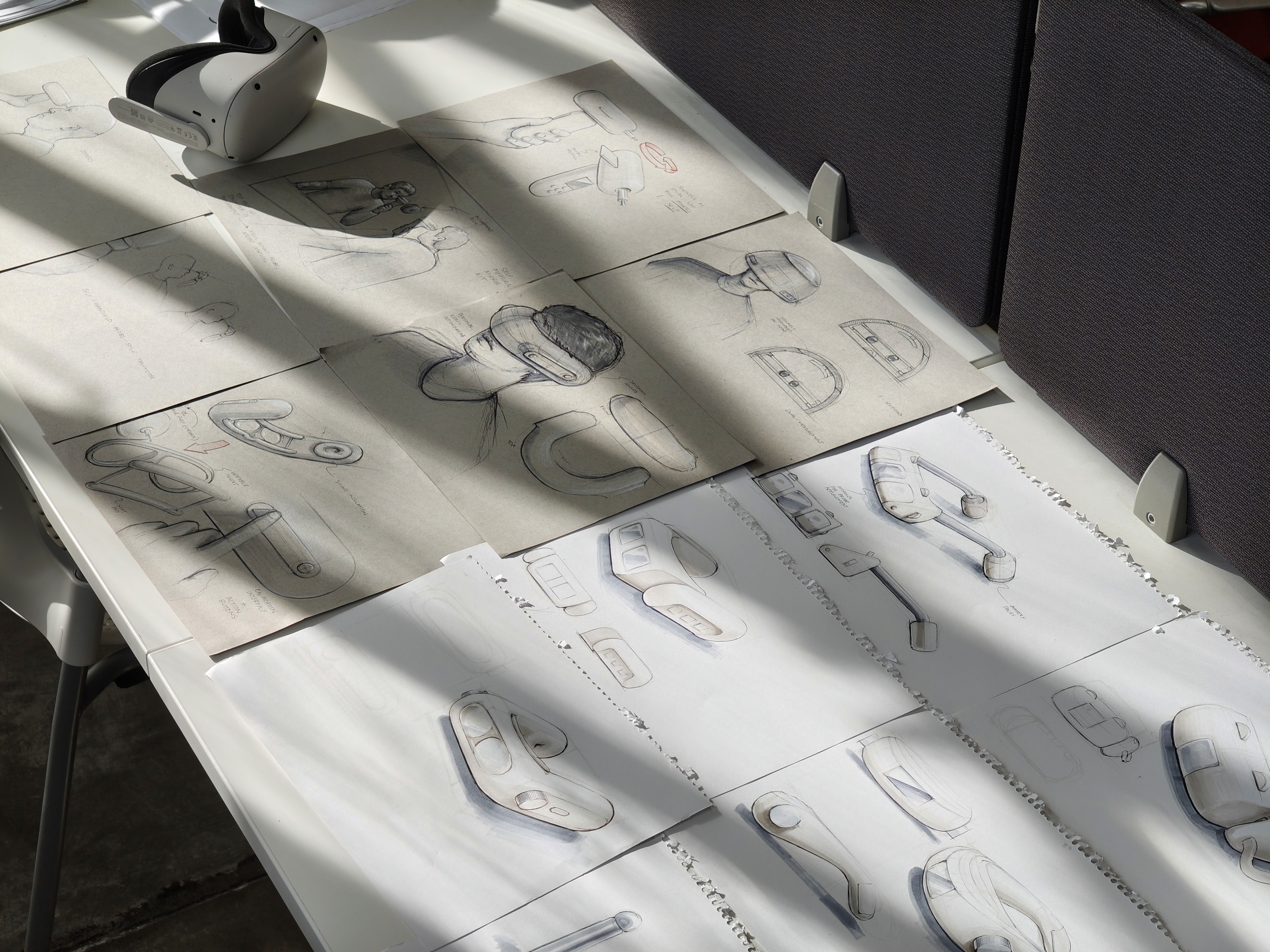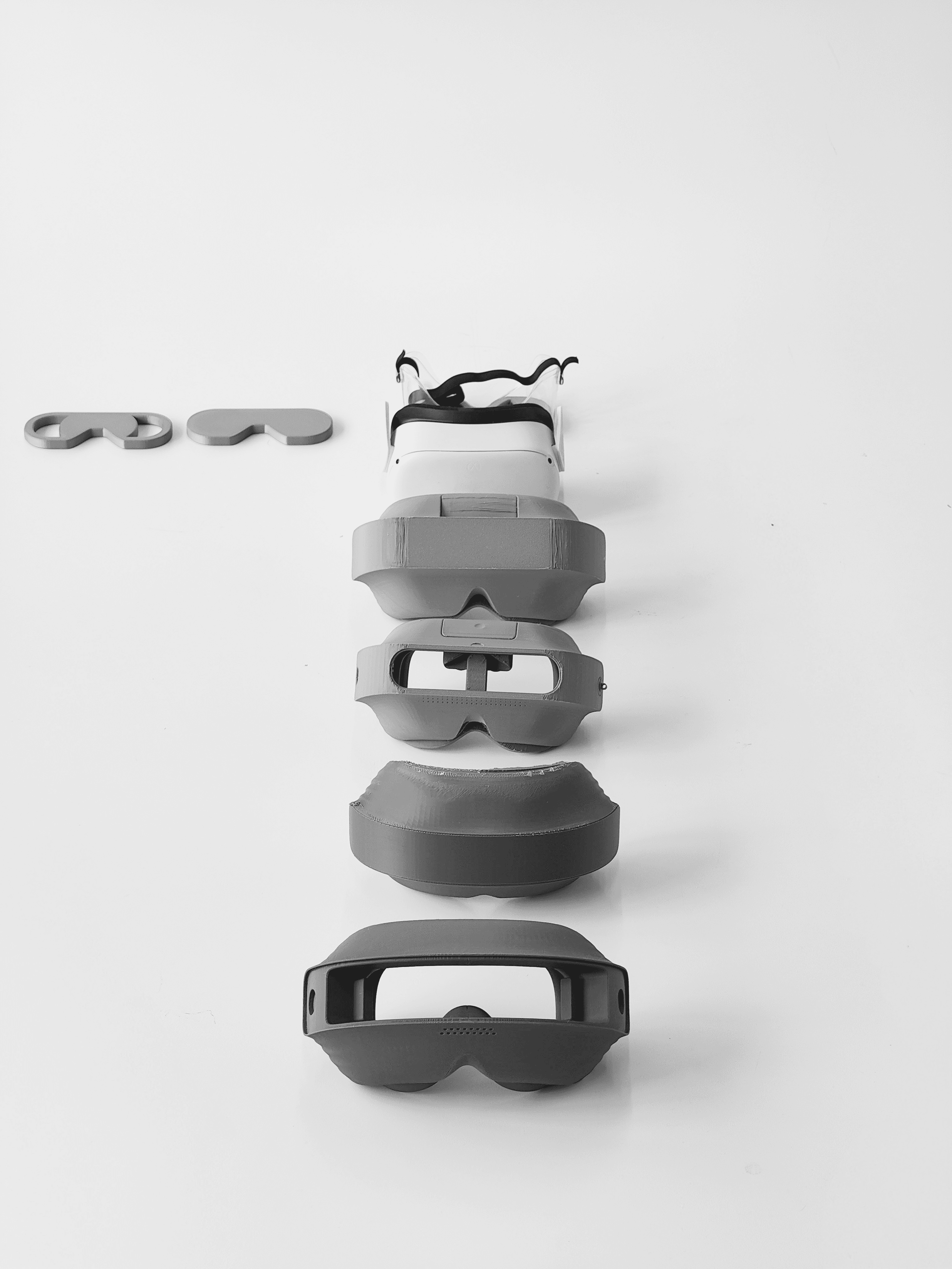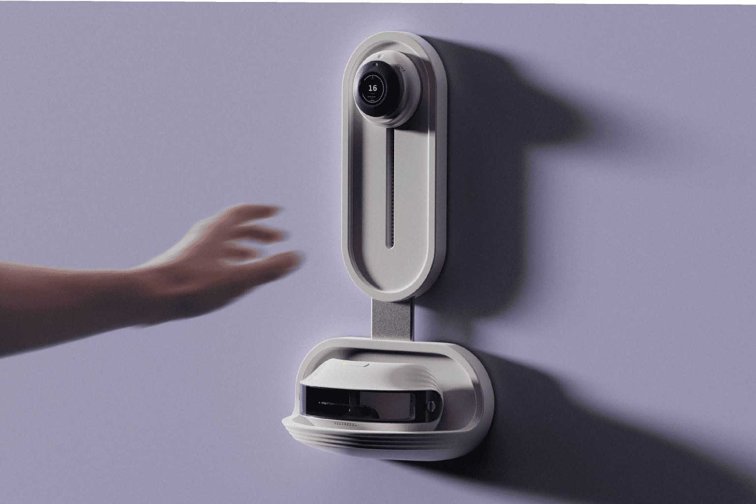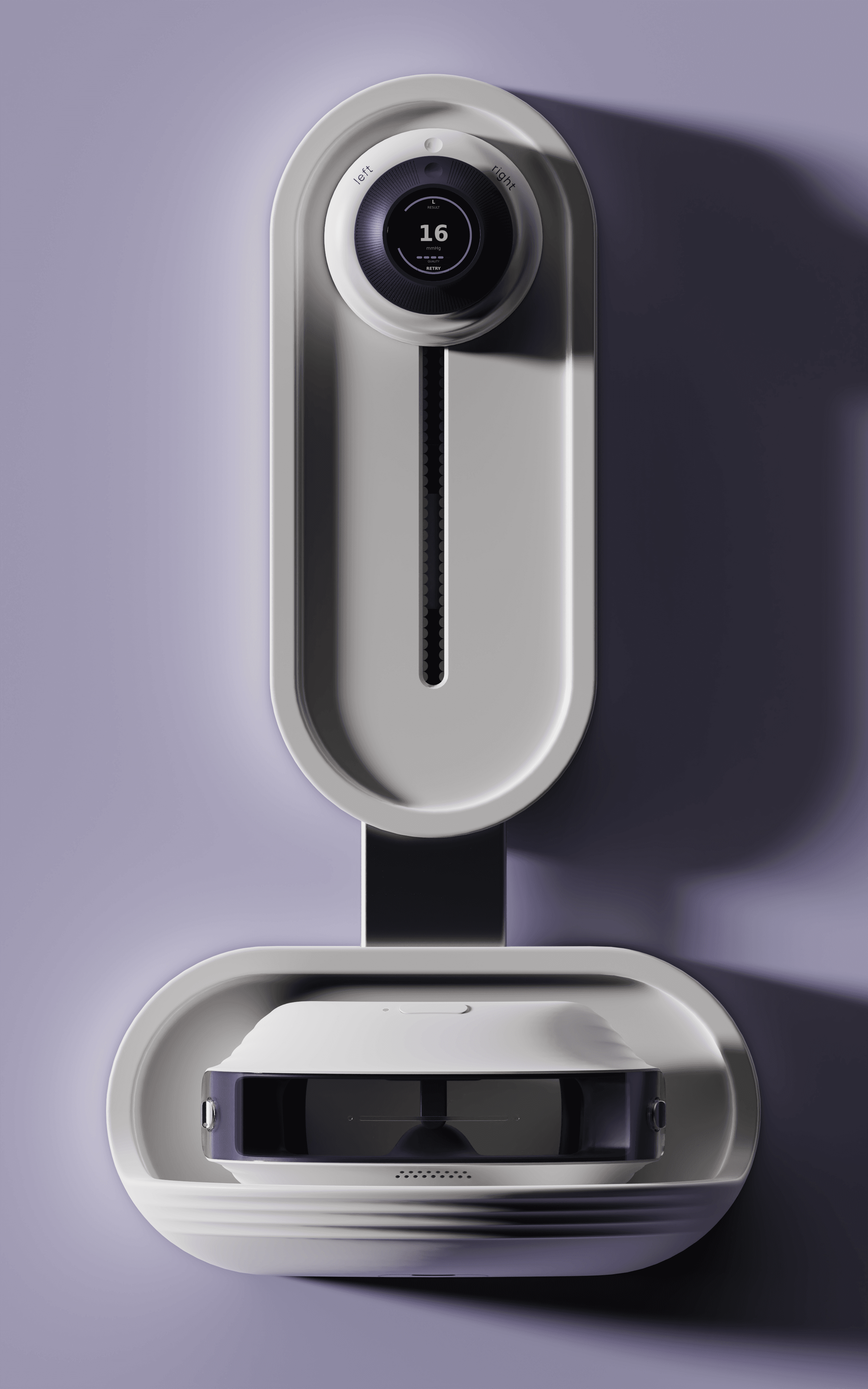 This is a three part system. The headset stabilizes positioning at the face, the puck dial produces results through focusing on it, and the wall mount keeps the kit charged and ready between patients.