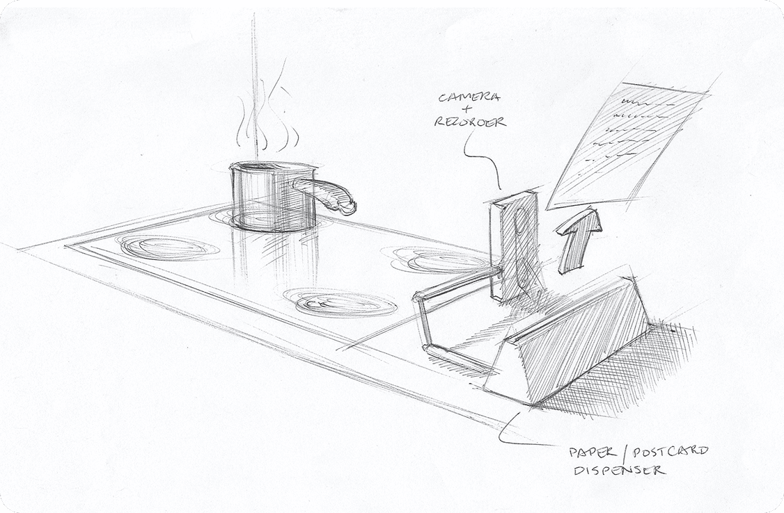 The idea was to create a device that could record your recipe, and spit out a physical “postcard” to share.